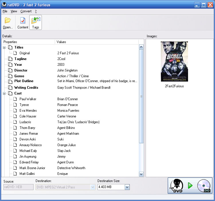 All data about actors, directors, plot and even the cover is automatically retrieved and stored inside the RatDVD container as an easily accessible XML file.
